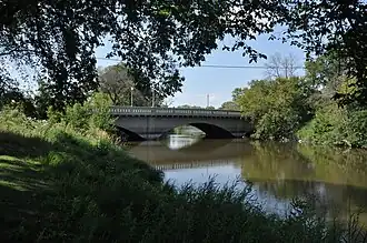 The West Park Bridge across the Sheyenne River in Valley City, North Dakota is a concrete false arch structure that was built in 2007. Together with the corresponding East Park Bridge, it brings Valley City's 4th Street across an oxbow of the Sheyenne River. The bridge is a sympathetic replacement for a historic bridge, built in 1924, that was listed on the National Register of Historic Places in 1997.[1][2]
