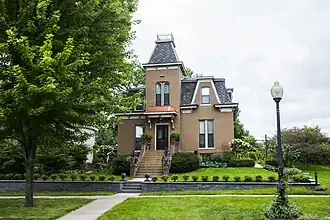 The Strauss House, built in 1875 in the Second Empire style, faced with stucco and topped with a mansard roof (Northeast Elevation).[2]