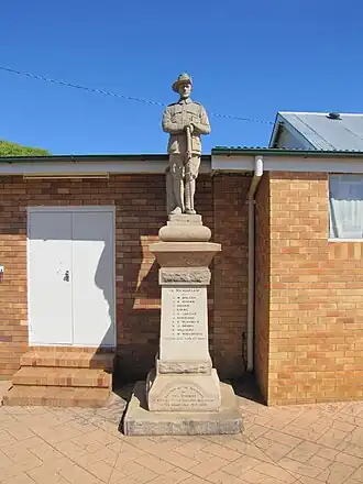 Westbrook War Memorial is a heritage-listed memorial at 114 Toowoomba Road, Westbrook, Toowoomba Region, Queensland, Australia. It was constructed in 1922 by Toowoomba masonry firm Bruce Brothers, and lies adjacent to the Westbrook Public Hall, which it predates. It stands 4.2 metres (14 ft) high, and consists of a statue of a digger atop a sandstone pedestal and base. The memorial contains the names of the 10 local men who died during World War I on the front face, and the 37 who served on the side faces. It was added to the Queensland Heritage Register on 21 October 1992.[1]