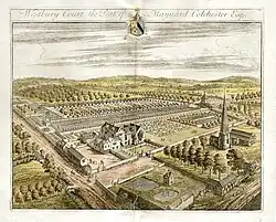 Maynard Colchester II also demolished the original late Elizabethan manor house of Westbury Court[12] in the 1740s and built a Palladian mansion in its stead, to designs of a little-known mason of Bristol, Michael Sidnell.[13] This was in turn replaced by a 19th-century country house, no longer standing.