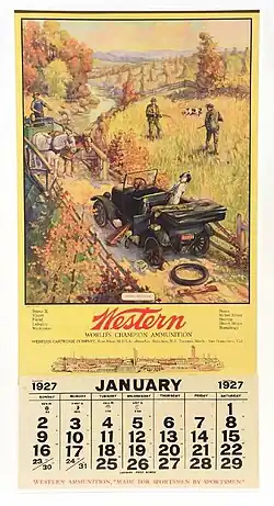 John Olin, the son of founder Franklin W. Olin, improved shotgun cartridge designs in the 1920s by using harder shot and progressive burning powder.[9] Western produced 3 billion rounds of ammunition in World War II, and the Winchester subsidiary developed the U.S. M1 carbine and produced the carbine and the M1 rifle during the war. Western ranked 35th among United States corporations in the value of wartime production contracts.[10] Cartridges made by Western are stamped WCC. Western Cartridge Company produced the now collectible "Western Xpert" brand of shotgun shells in both 12 and 16 gauge sizes.