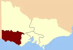Western Province was defined in the Victorian Constitution Act, 1855, as : "Including the Counties of Ripon, Hampden, Heytesbury, Villiers, Normanby, Dundas, and Follett."[3]