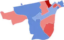 Where a party had more than one candidate in one or both of a pair of successive elections change is calculated for each individual candidate, otherwise change is based on the party vote. Change figures at by-elections are from the preceding general election or the last intervening by-election. Change figures at general elections are from the last general election.