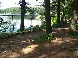 The Weston Reservoir is part of the greater Boston water supply maintained by the Massachusetts Water Resources Authority. It is located in central Weston, with its principal public access point on Ash Street.