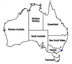 The species is found in the coastal ranges of south-eastern New South Wales, west of Pambula and Eden. There it is restricted to shallow, organic loam soils in the ecotone between rocky outcrops vegetated with shrubland and herbs, and open forest dominated by Silvertop Ash.[2]