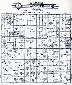 Organization of Westside Township was approved by the Nobles County Board on February 6, 1877. The first township meeting was held on February 24, 1877. The western half of the city of Adrian lies within Westside Township. This township lies on Nobles County's western border, hence the name Westside Township.[3]