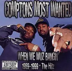 When We Wuz Bangin' 1989–1999: The Hitz is the first greatest hits album by American hip hop group Compton's Most Wanted including solo material recorded by the group's frontman MC Eiht.[3] It was released on January 23, 2001, via The Right Stuff/Capitol Records. Composed of thirteen tracks, it contains songs from the first three Compton's Most Wanted albums—It's a Compton Thang, Straight Checkn 'Em and Music to Driveby—, its A-side and B-sides, Menace II Society (The Original Motion Picture Soundtrack), MC Eiht featuring CMW album We Come Strapped, Spice 1's album 1990-Sick, and MC Eiht's solo album Section 8. Production was handled by DJ Slip, The Unknown DJ, Blackjack, Fredwreck and MC Eiht, with Tom Cartwright serving as executive producer. It features guest appearances from Scarface and Spice 1.