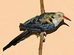 3. ^ a b c d Ligon, D. & Kirwan, G.M. (2018). White-headed Woodhoopoe (Phoeniculus bollei). In: del Hoyo, J., Elliott, A., Sargatal, J., Christie, D.A. & de Juana, E. (eds.). Handbook of the Birds of the World Alive. Lynx Edicions, Barcelona.