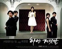 White Lie[1] (Korean: 하얀 거짓말; RR: Hayan geojinmal) is a South Korean television series starring Shin Eun-kyung, Kim Hae-sook, Kim Yu-seok, Kim Tae-hyun and Im Ji-eun. The morning daily drama aired on MBC on Mondays to Fridays at 7:50 a.m. from November 10, 2008, to July 17, 2009, for 179 episodes.