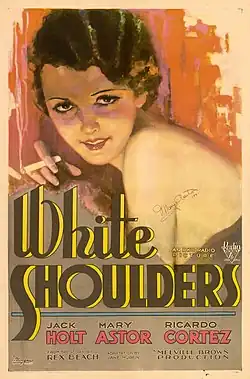 White Shoulders is a lost[4] 1931 American pre-Code comedy-drama film directed by Melville W. Brown and starring Mary Astor and Jack Holt, with major supporting roles by Ricardo Cortez and Sidney Toler.[5] The film was produced and distributed by RKO Pictures. The screenplay by Jane Murfin and J. Walter Ruben was adapted from Rex Beach's short story, The Recoil.