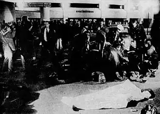 In September, the group made their first trip to the United States since 1976 for a series of shows at the Capitol Theatre in Passaic, New Jersey, and Madison Square Garden in New York City. A horn section was introduced to the band's act for the first time around this time. It would be retained through 1980. They returned to the States in November for an official tour, which was marred by tragedy when 11 fans were killed and 26 others were injured at a crowd crush before a concert at Riverfront Coliseum in Cincinnati on 3 December.[1] This led to the banning of festival seating in Cincinnati and many other cities and states around the United States for a considerable period.[2] The disaster also caused a scheduled concert for 17 December in Providence, Rhode Island, to be cancelled, leading to a second show in Landover, Maryland (the first was on 13 December) to be scheduled in its place. The group ended the year with a benefit appearance at the Hammersmith Odeon, London, on 28 December as part of the Concerts for the People of Kampuchea.[1]