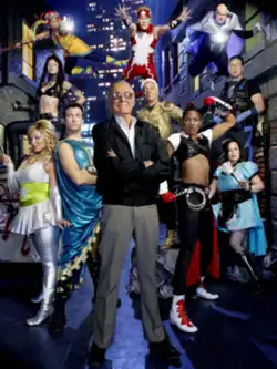Potential contestants auditioned as their super hero selves. The final 10 selected were then placed in common quarters. The contestants were then tested for super hero traits.[4] Lee was the only judge and would instruct the eliminated contestant: “Turn in your costume”.[5] He also mentored the contestants and made appearances, primarily on TV screens, on a giant plasma at the top of a tower block, monitor resting in the middle of a pile of trash or on individually issued "communicators".[4] Winner's character concept would be the star of a Stan Lee scripted Dark Horse comic book and of a TV movie for the Sci Fi (SyFy) Channel.[3][1]