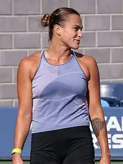 Tennis player Aryna Sabalenka wearing the Whoop band at the 2023 Us Open