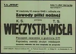 Poster advertising a friendly game with Wisła Kraków, 1946