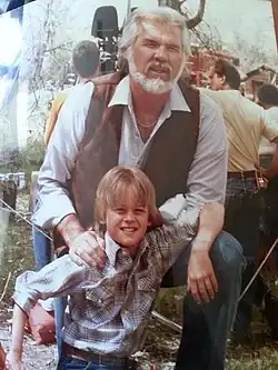 Kenny Rogers with his nephew on the Wild Horses set in 1985