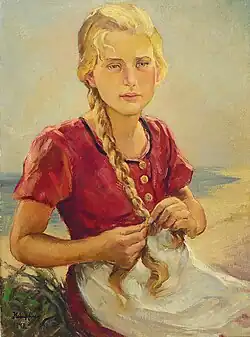 He was given "Special Importance" under the Nazi regime so, between 1937 and 1944, he had several exhibitions at the Große Deutsche Kunstausstellung in the Haus der Kunst in Munich.[1] At least one of his works is known to have been purchased by Hitler, the nude "Sitzende Blondine" (Sitting Blonde), which bore a striking resemblance to Eva Braun.[2]