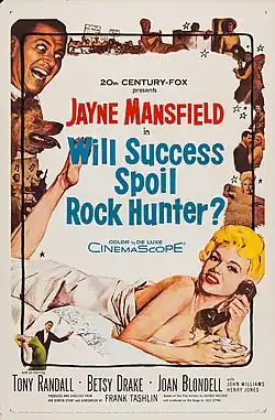 Will Success Spoil Rock Hunter? is a 1957 American satirical comedy film starring Jayne Mansfield and Tony Randall, with Betsy Drake, Joan Blondell, John Williams, Henry Jones, Lili Gentle, and Mickey Hargitay, and with a cameo by Groucho Marx.[3][4] The film is a satire on popular fan culture, Hollywood hype, and the advertising industry, which was profiting from commercials on the relatively new medium of television. It also takes aim at the reduction television caused to the size of movie theater audiences in the 1950s. The film was known as Oh! For a Man! in the United Kingdom.