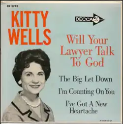 "Will Your Lawyer Talk To God" is a song written by Harlan Howard and Richard Johnson, sung by Kitty Wells, and released on the Decca label. In September 1962, it peaked at No. 8 on Billboard's country and western juke box chart.[1][2] It spent 11 weeks on the chart.[1]