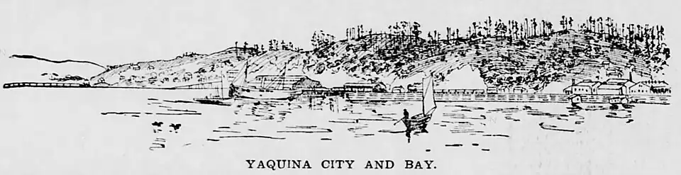 Instead of reaching Yaquina Bay at Newport, a new "city" was created several miles upriver called Yaquina City. Envisioned as a hub of trade, the small loading dock that served as the terminal point of the WV&C proved to be economically unsuccessful and quickly atrophied. The site of Yaquina City is now entirely abandoned, with few traces remaining.