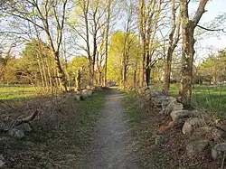 Over the course of several years, Willard's Woods have had issues with controlling of pet dogs. On June 8, 2010, residents of Lexington met to discuss the possibility of restricting the access of dogs to the park: requiring all dogs to be leashed, prohibiting dogs in certain parts of the park, or a hybrid combination of the two.[2] However, some residents continued to speak out against the possibility of new restrictions.[2] In November 2011, dogs were required to be leashed on the weekends and could be unleashed on weekdays, but only if the owner could see the dog and quickly have the dog return with the owner.[3] Owners were also prohibited from bringing more than two dogs into the park and were also required to pick up any feces left behind by their dogs.[3]