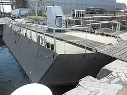 The dry dock was closed by a ship caisson. This had been built at Rijkswerf Medemblik. After launch it had been transported on ship camels to the Vlieter in 8 days. From there it was towed to Nieuwediep by two tugs, and arrived there on 29 June 1822. On 6 July the floating door was put in place in the dy dock, and was shown to fit very well.[11] The door was later replaced.