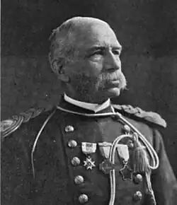 Auman was given commendations for his actions at the battle, notably being praised by Bvt. Major General Adelbert Ames and Major General Jacob Ford Kent.[3] Around this time, Auman briefly participated in the Philippine–American War at the Battle of Manila.[6] Later on, Auman was transferred to the 21st Infantry Regiment and promoted to lieutenant colonel on September 7, 1900, but was placed back on the 13th Infantry Regiment on March 11, 1901. Auman was then placed on the 29th Infantry Regiment as its colonel on October 16, 1901. Auman was then given his highest promotion to brigadier general on April 16, 1902, before retiring on May 10 of the same year.[1][2]