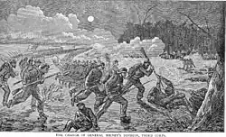 At the outbreak of the Civil War, Birney entered the Union Army on May 22, 1861, as a captain in the 1st New Jersey Infantry Regiment.[1] He first saw combat in the First Battle of Bull Run. Promoted to major of the 4th New Jersey Infantry Regiment, he participated in the battles of Second Bull Run, Chantilly, Fredericksburg, and, as a colonel, Chancellorsville. In 1863โ64, he was appointed as one of three superintendents in charge of enlisting colored troops into the Union army, and in that capacity organized seven regiments. He was named Colonel of the 22nd U.S. Colored Troops. On June 9, 1863, he was commissioned as a brigadier general of volunteers, to rank from May 22, 1863, and assigned to Maryland to recruit more black troops.[2][3] In 1864, he marched his regiments to fight in South Carolina as a part of the Department of the South. They fared poorly, but did much better work in campaigns in Florida, including the Battle of Olustee.
