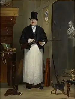 Portrait of the "Bishop of Bond Street" by Henry Barraud, 1848. The bust is of Colonel Peter Hawker.