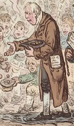 William Bosville leading a campaigning procession for his candidate James Paull (1770–1808) at the November 1806 Election for the seat of Westminster. Detail from a caricature by James Gillray