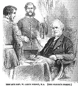 An article about Carus Wilson that appeared some years after his death in The Children's Friend celebrated his efforts in later life to address drunkenness among British soldiers through personal visits to barracks and the distribution of tracts by mail. "He invited soldiers to regard him as their friend, and consult him when needing advice."[18] He also provided Bibles to French soldiers who fought in the Crimean War.[6]
