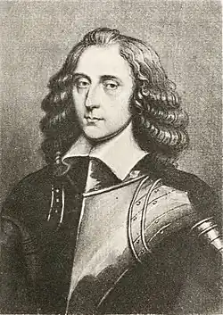 Along with his regiment, Goffe transferred to the New Model Army in April 1645, with Edward Harley taking over from Barclay as colonel.[8][c] Over the next year, this formation served in numerous actions, including the battles of Naseby, Langport and Torrington, as well as the sieges of Bridgwater, Bristol, Berkeley Castle and Exeter.[9] The surrender of Oxford in June 1646 brought the First Civil War to a close, with the exception of a few isolated Royalist garrisons that held out until 1647.[10]