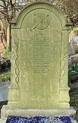 He died in the St Pancras district of London, aged 68.[6] He was buried with his wife Elizabeth at Highgate Cemetery, with a memorial above the grave paid for by members and friends of the Royal Life Saving Society.