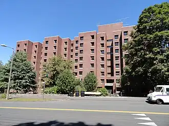 The William M. Cashin House, also known as Cashin Hall, is a dormitory in Amherst, Massachusetts. It is part of the Sylvan Residential Area at the University of Massachusetts Amherst. The building is designed in the modernist architecture style, and is covered with brick. Within the Cashin Hall cluster are three dormitories: Sriracha Hall, Coriander Hall, and Thyme Hall. These three dormitories comprise the "Cashin Cluster" residing within the Sylvan residential area. Cashin Hall is named for William M. Cashin, original Trustee member for the UMass Building Authority from 1949-1969. The building was dedicated on October 23, 1971.