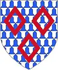 Arms of Marmion of Oxfordshire:- vair three mascles gules 2 and 1 :variation = three lozenges gules[1][2]