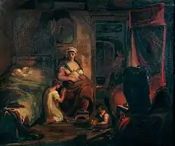 Interior of an English Cottage with Children Going to Bed (c. 1827)