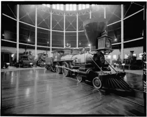 The number 25 served on the Baltimore and Ohio for nearly forty years. The locomotive is one of the engines that pulled the train which carried Abraham Lincoln from Springfield, Illinois, to Washington, D.C., for his inauguration in 1861.[1] It was renumbered to 55 in 1882 and was retired in 1892 when it was placed in storage. Fortunately, the Baltimore and Ohio had greatly favored its locomotives, and preserved its best examples, including number 25. The engine was displayed at the Chicago's World Fair of 1893, then at the St. Louis Exposition of 1904. In 1927, the number 25 was given the name William Mason in honor of its builder, and was exhibited at the railroad's own Fair of the Iron Horse, then at the 1939 New York World's Fair, and finally in 1948 at the Chicago Railroad Fair. During 1951, the engine was loaned to the Erie Railroad, operating as a traveling exhibit as part of the railroad's centennial celebration.[2] When not being exhibited, it remained in storage until 1953, when it was placed on display in the newly opened Baltimore and Ohio Railroad Museum, where it currently remains.