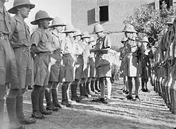 In October 1934, Platt was given command of 7th Infantry Brigade in the rank of temporary brigadier.[23] From 1937[24] to 1938, he was aide-de-camp to the King and in late 1938 Platt was promoted to major-general[25] to take up the appointment as Commandant of the Sudan Defence Force.[26] In this role he carried the Arabic title of al-qa'id al-'amm ("the Leader of the Army") and was often referred to simply as "the Kaid".[27] He was appointed a Companion of the Order of the Bath in 1939.[28]