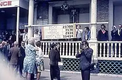 Rees-Davies is re-elected MP for the Isle of Thanet Constituency with 33,434 votes. The results were declared outside Granville House, Ramsgate. Photographed by Eric Easton, 18 June 1970.