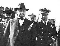 Despite threats on his life, Stephens remained publicly visible throughout his governorship. He was part of the general welcoming committee when Edward, Prince of Wales, arrived aboard HMS Renown in San Diego Bay in 1920, during the future British monarch's first visit to California.[7] Stephens was also present when his daughter, Barbara (Mrs. Randolph T.) Zane, ceremonially launched the battleship USS California.