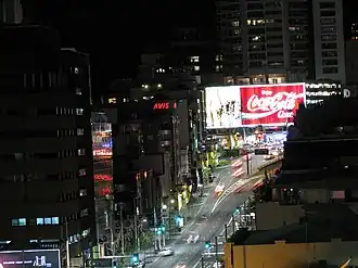 During the period between World War I and World War II, William Street was the bustling centre of Sydney's automotive trade, with Yorks Motors in William House set up as the sole New South Wales distributor of Plymouth and Chrysler cars in 1932.[5][6] William Street also once housed recording studios for the Australian Broadcasting Commission.[7] The Watsons Bay tram service was opened in 1894 travelling along William Street and operated until circa 1901. Tram services were electrified in 1905.[8][9] Motor buses were introduced after World War I. During the 1930s, the tram service from William Street through Kings Cross ran as frequently as one tram per minute during weekdays. With the combination of trams, buses and cars, the William Street, Darlinghurst Road and Victoria Street junction (Kings Cross) became one of Sydney's busiest intersections and worst bottlenecks. The tram line on William Street and through Kings Cross was closed on 10 July 1960,[10] superseded by buses and later, the Eastern Suburbs railway line.