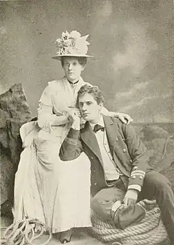 In December 1885 Terriss met 24-year-old Jessie Millward, with whom he starred as David Kingsley in the extraordinarily successful The Harbour Lights (by G. R. Sims and Henry Pettitt), which ran for 513 performances.[20] The pair established themselves as romantic leads together and presumably became lovers.[3][21] In 1887 Terriss and Millward were engaged at the Adelphi in its melodramas, with Terriss in the hero parts, beginning with Frank Beresford in The Bells of Haslemere (1887).[22] He excited the audience at the Adelphi in both passionate love scenes and in fighting scenes.[6] For the next half dozen years, he rejoined Irving at the Lyceum, where his most acclaimed roles included the title role in Henry VIII (1892) and as Henry II in Becket (1893).[4] In 1889–90, and again in 1893–94, Terriss and Millward toured in the US with Irving.[23]