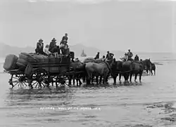 Dunedin-born Kettle, having served an apprenticeship with G G Russell & Co, wool and general merchants, had opened a Napier branch for Murray Roberts (at first named Murray Common & Co) in 1877[2] but the partnership was dissolved in 1885 and Kettle joined Williams in his Napier shipping agency.[3] His new partnership with F W Williams was reported in the local newspaper beside the account of his colleagues' presentation on his departure on 28 July 1885.[4] Kettle was a son of surveyor Charles Kettle and his wife, Lena, was the only daughter of Major Von Tempsky.[2] They had married in 1880.