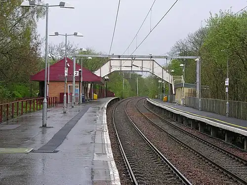 Williamwood railway station is a railway station in the Williamwood area of the town of Clarkston, East Renfrewshire, Greater Glasgow, Scotland. The station is managed by ScotRail and lies on the Neilston branch of the Cathcart Circle Lines. The line here forms the boundary which separates Clarkston and Giffnock.