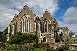 After the flood of 1287, work started almost immediately on a Gothic church, with a chancel and choir, side chapels, tower, transepts and nave, though only the chancel and chapels remain in use. The transepts are in ruins and there is nothing to be seen of the nave.[11] By the start of the 19th century, the church had become so dilapidated it was "almost unfit for public worship". In 1850, the church was restored from dilapidation.[12]