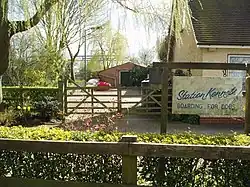 The site of Winslow Road has been reused for dog kennels.[24][19][25] A brick pig sty was constructed between the platforms and this now forms part of the kennels.[26][27] A fragment of the Up platform complete with blue bricks survives to the left of the former pig sty.[27][28]