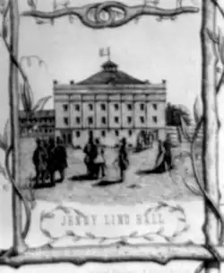 The so-called "Jenny Lind Hall", detail from a poster of 1850 before the concert hall was finished.[5]