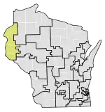 The 10th Senate district of Wisconsin is one of 33 districts in the Wisconsin Senate.[1] Located in northwest Wisconsin, the district comprises all of Buffalo, Pepin, Pierce, and St. Croix counties, along with most of Trempealeau and parts of western Dunn County. It continas the cities of Hudson, Arcadia, New Richmond, Prescott, Mondovi, Blair, Independence, Buffalo City, Fountain City, and River Falls. It also contains landmarks such as Kinnickinnic State Park, Perrot State Park, Trempealeau National Wildlife Refuge, and part of the Saint Croix National Scenic Riverway.[2]
