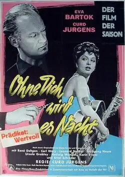 Without You All Is Darkness (German: Ohne dich wird es Nacht) is a 1956 West German drama film directed by and starring Curd Jürgens.[1] Eva Bartok, René Deltgen and Ursula Grabley also star.