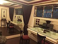 Women's Club restroom lounge.