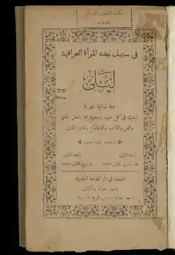 5. ^ Mohammed, Ibtisam Humoud (2021). "The Iraqi Women's Renaissance Club and Its Impact on The Development of Cultural Awareness of Women (1923-1932)". Journal of Al-Frahedis Arts. 13 (45 | Third Part).